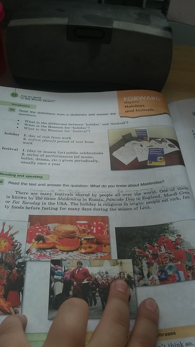 I would like to tell you about a wonderful holiday which is called Maslenitsa. It is celebrated on the last Sunday of March, when winter is giving its rights to spring. On this day different Russia's great folk festivals with horse riding take place in many cities, towns and villages. There are a lot of jokes, songs and dances just in the streets. Everybody is offered some hot tea and Russian pancakes with different toppings: honey, jam, butter, caviar! But the most important thing is the burning of the effigy of winter and meeting of beautiful spring.