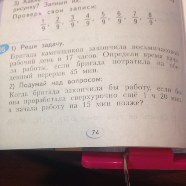 1) 17 час - 8 час 45 мин = 8 час 15 мин - начала работать бригада