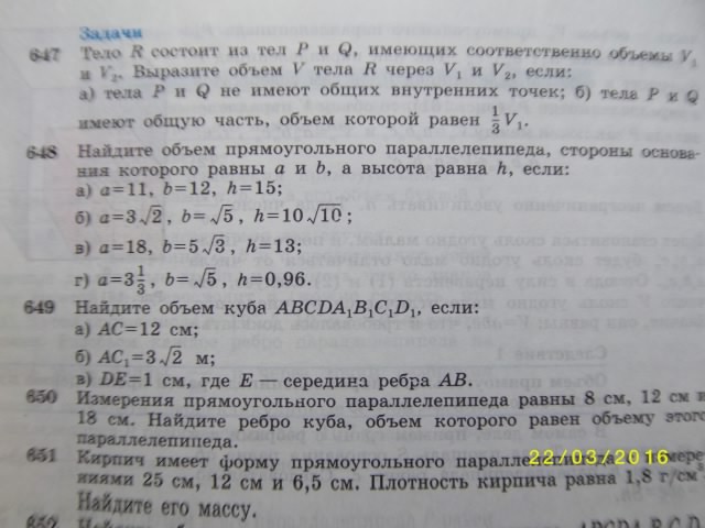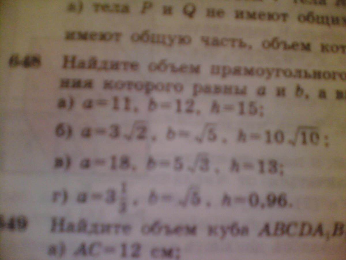 найдите объём прямоугольного параллелепипеда стороны основания которого равны a и b высота h если : ( фото добавил )