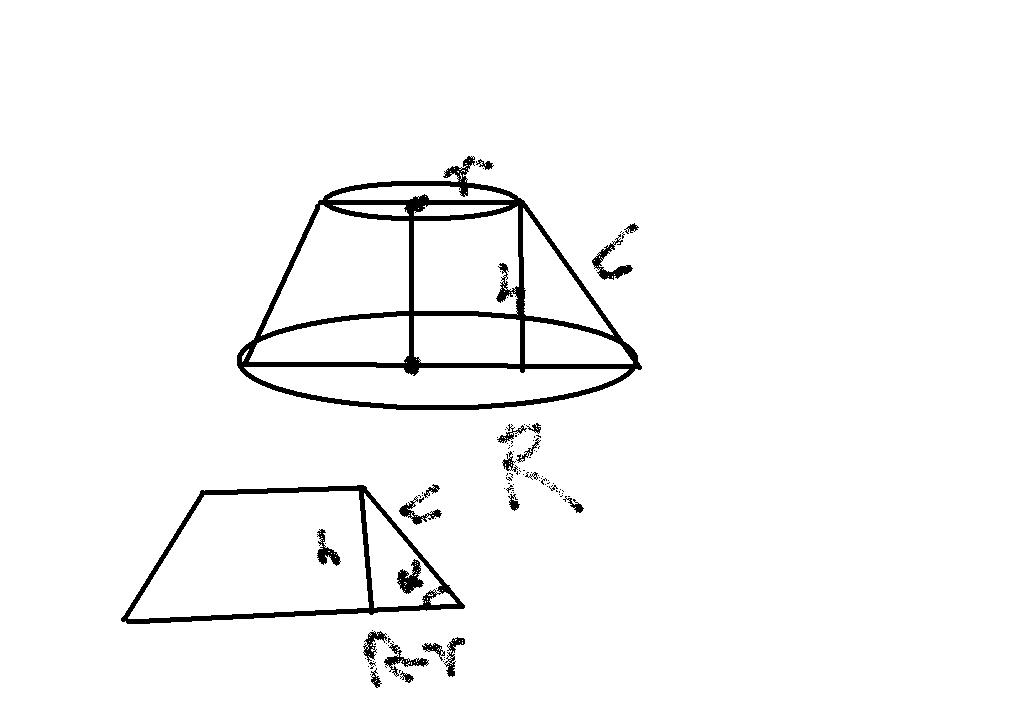 а площадь нижнего и верхнего оснований соответственно 38п и 6п.Найдите угол между обрузующей и плоскостью основания этого усеченного конуса.
