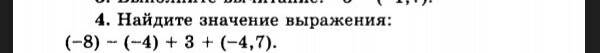 -8 + 4 + 3 - 4.7 = -1 - 4.7 = - 5.7