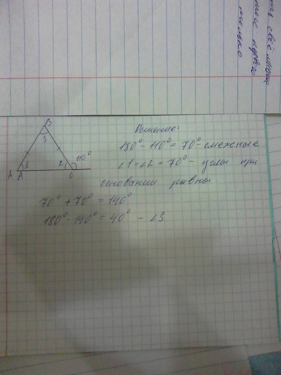 угол 1=70°, угол 2=70°, угол 3=40°.