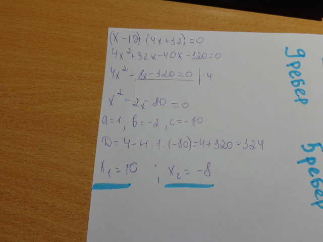 (х-10)(4х+32)=0