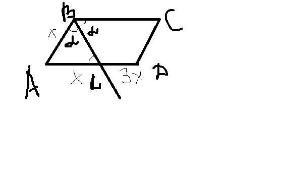 Так как биссектриса - BL, то углы ABL = LBC, ВС параллельно AD значит углы CBL= BLA как накрест лежащие, из этого получаем AB=AL И