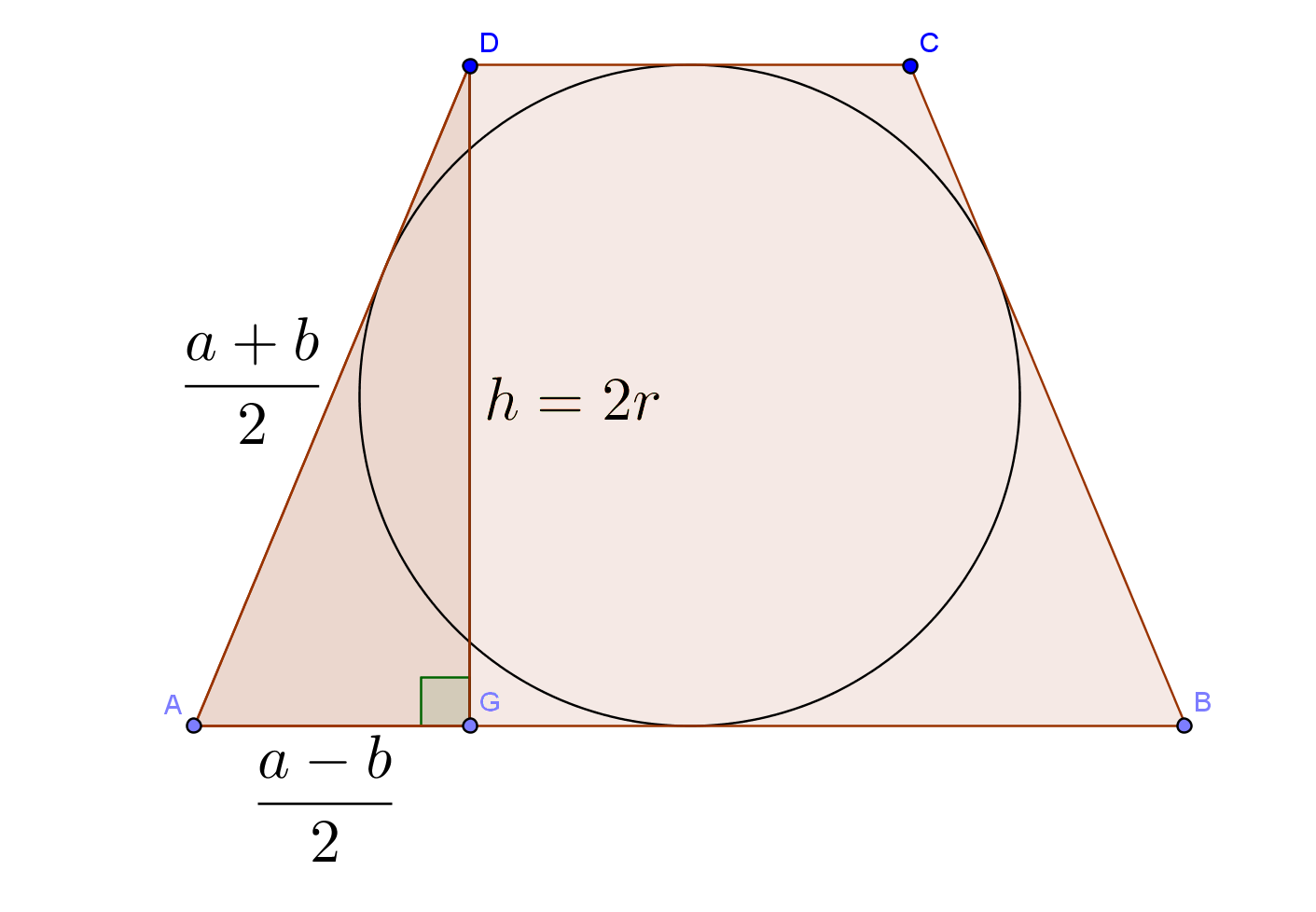 Опустим высоту DG. Если основания a и b, то h=DG=2r, AG=(a-b)/2, AD=(a+b)/2.