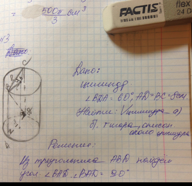 Если эта плоскость проходит через середину цилиндра, тогда: