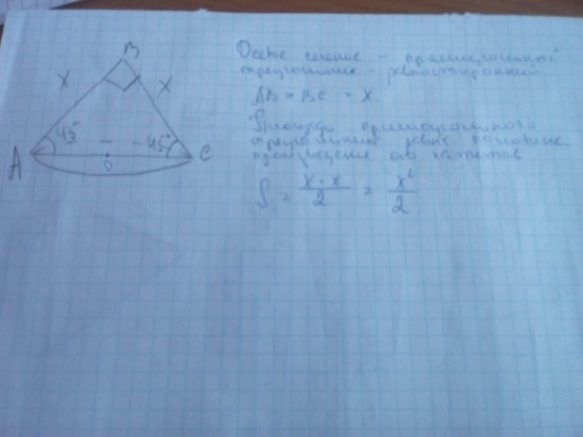 Образующая конуса L наклонена к плоскости основания под углом 45 градусов найти площадь осевого сечения конуса