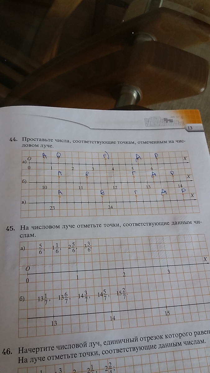 44a) A= 2/3 ; B=1 цел.1/3= 1'1/3 ; C= 3'2/3 ; D= 5'1/3 ; P= 6'1/3