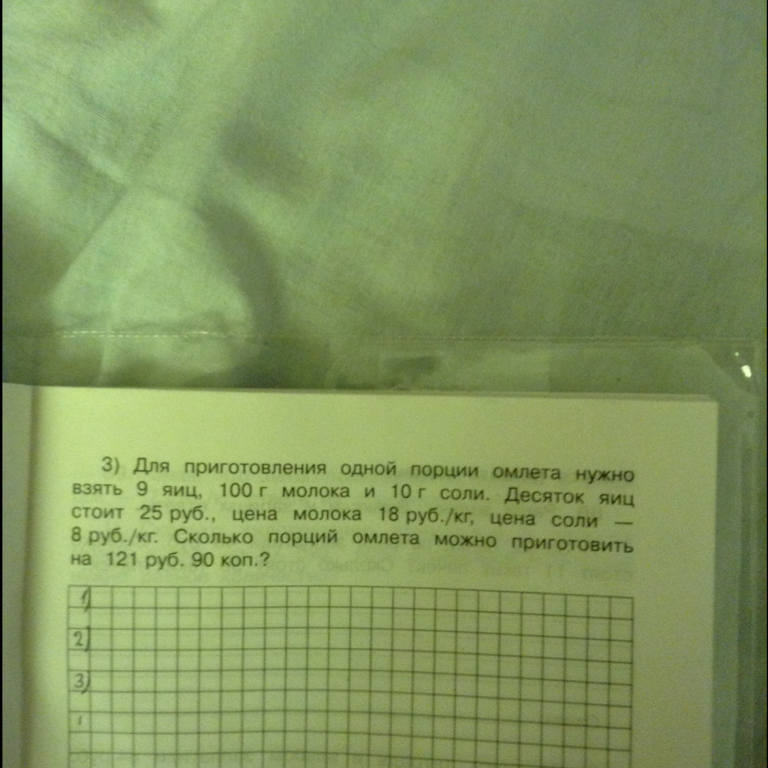 6) 12190:2438=5порций омлета можно приготовить на 121р.90коп.