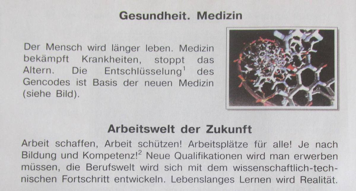 Создавать рабочие места, защищать работу! Рабочие места для всех! Каждому по образованию и умению. Нужно получать новые квалификации, мир профессии развивается согласно научно-техническому прогрессу. Учеба на протяжении всей жизни становиться реальностью.