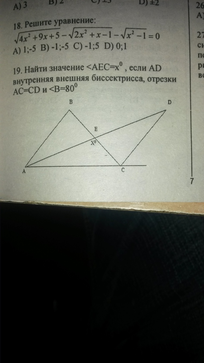 Следовательно, ∠ВАС= 180°-(80°+80°)= 180°-160°=20°. Так как АЕ-бессектрисса, значит ∠ЕАС=20/2=10°. Рассмотрим ΔАЕС. В этом треугольнике мы знаем все углы, кроме искомого. Следовательно: