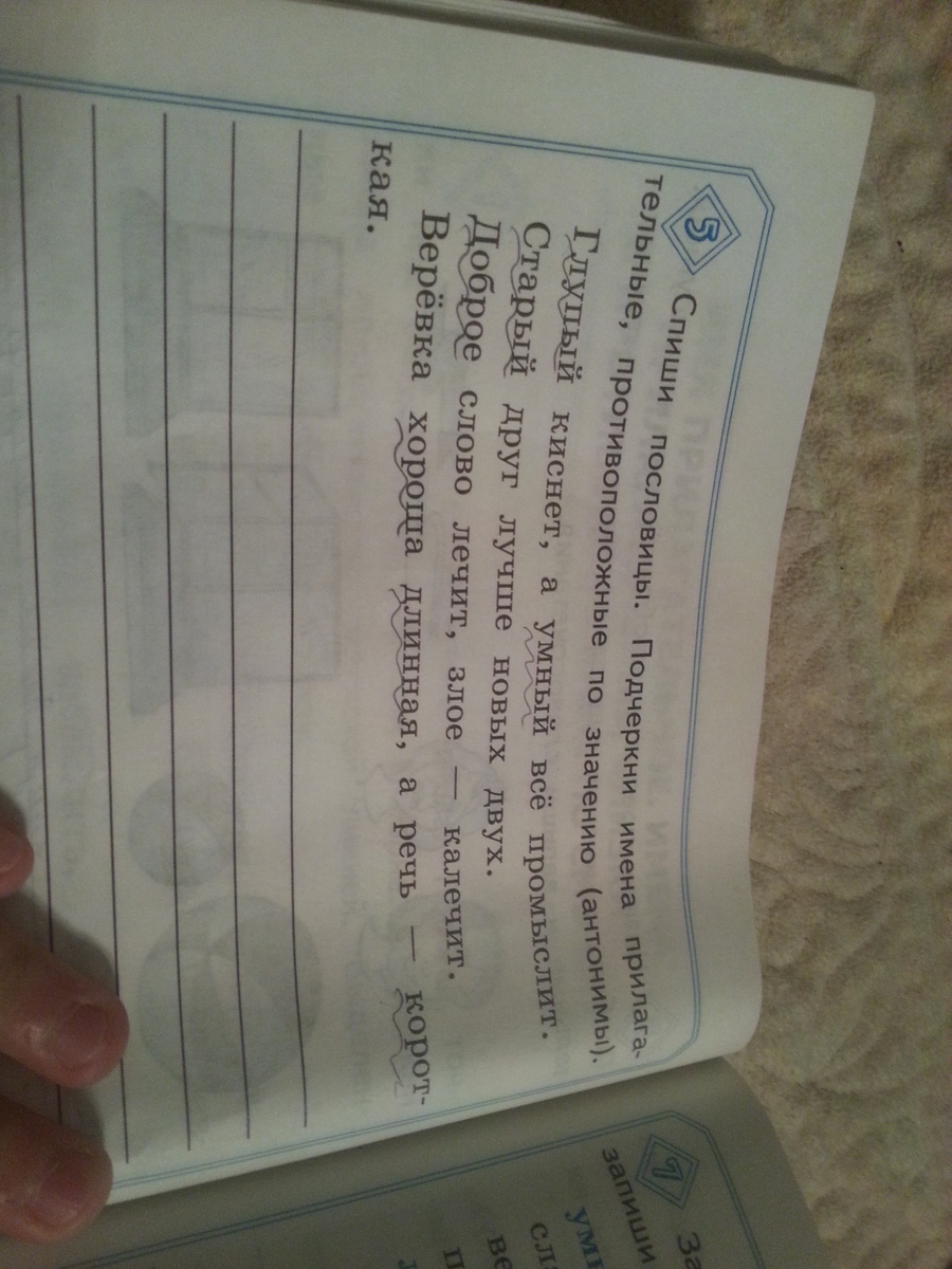 Спиши пословицы.Подчеркни имена прилагательные,противоположные по значению(антонимы).