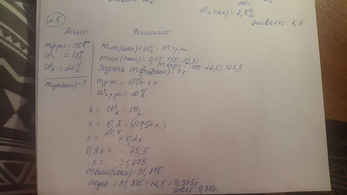 2. Дано: w=2,5%, mр-ра=200г. Найти: mв-ва. Решение: здесь формула такая: w=mв-ва/mр-ра*100%. Выражаем массу вещества (т.е. жира): mв-ва=w*mр-ра/100%. Подставляем, решаем: mв-ва=2,5%*200г/100%=5г. Ответ: 5г жиров.