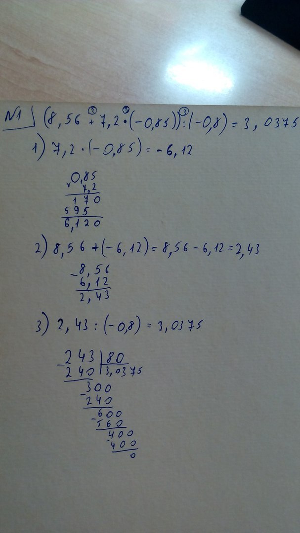 1. (8,56+7,2*(-0,85)):(-0,8)=