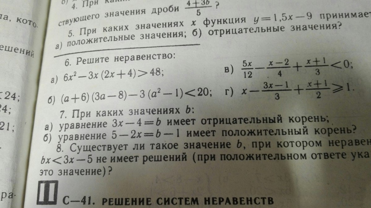 b) y<0, 1.5x-9<0, 1.5x<9, x<6, x∈(-∞; 6)