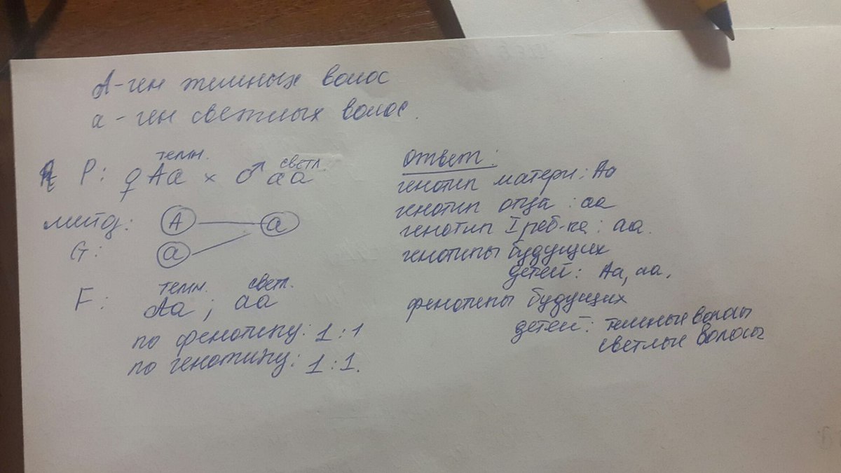 у темноволосой матери и светловолосого отца первый ребенок родился светловолосым. запишите генотипы родителей и этого ребенка. какие генотипы и фенотипы могут быть у их будущих детей