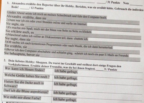 1.dass sie sich jeden Abend am Schreibtisch setzte und den Computer hochfuhr. 2. sie war 1/2 Stunden online und surfte im Int. 3. es machte ihr Spaß, sich mit der Maus von Seite zu Seite zu klicken. 4. dass sie manchmal online an Diskussionen teilnahm, dann chattete sie. 5. sich suchte oft nach..., die sie dann herunterlud. 6. bevor sie den Computer abschaltete und schlafen ging, schrieb sie noch ein paar E-Mails an Freunde.