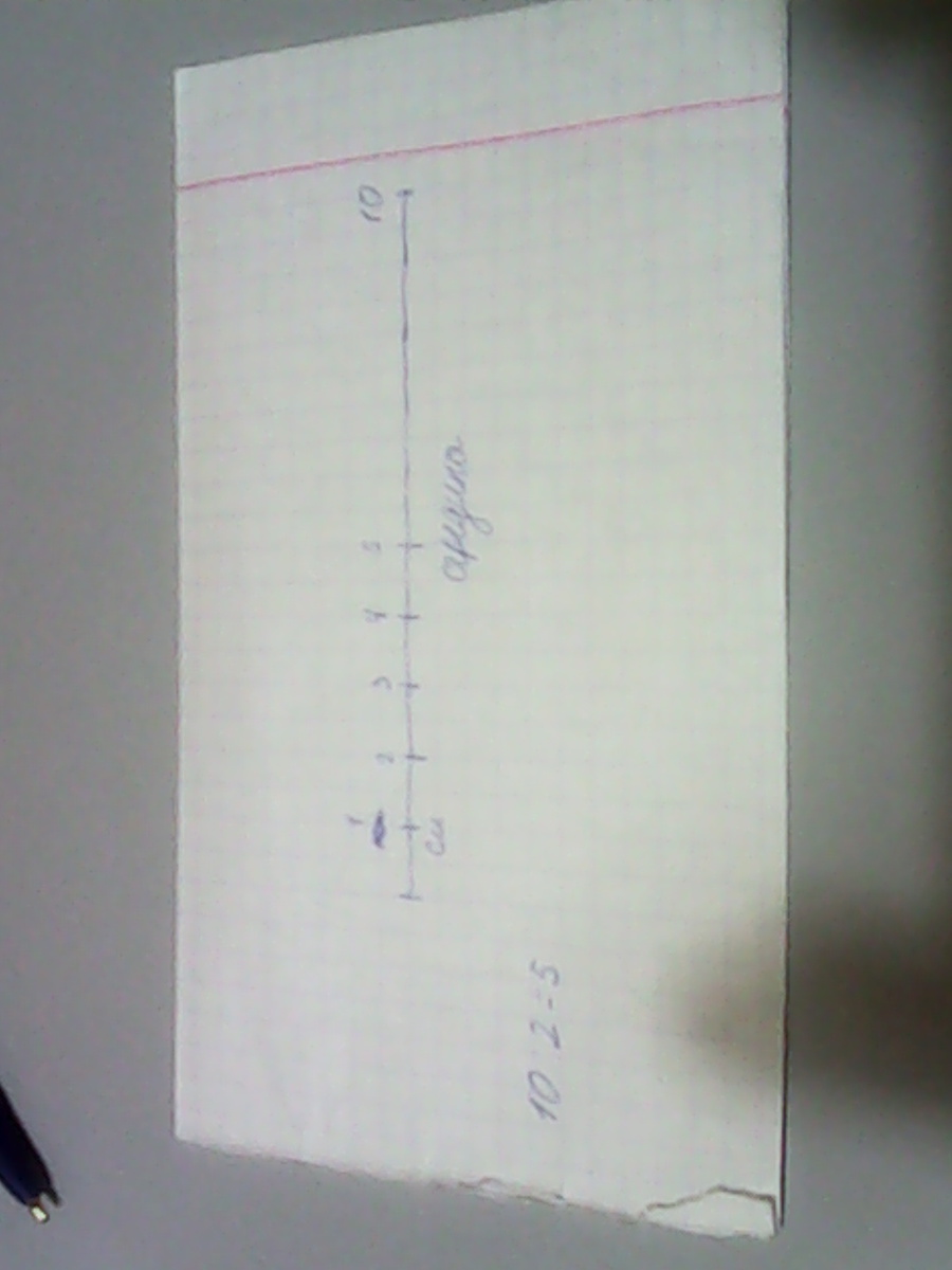 10:2=5 значит и половина этого отрезка в 10 см будет равно 5 см