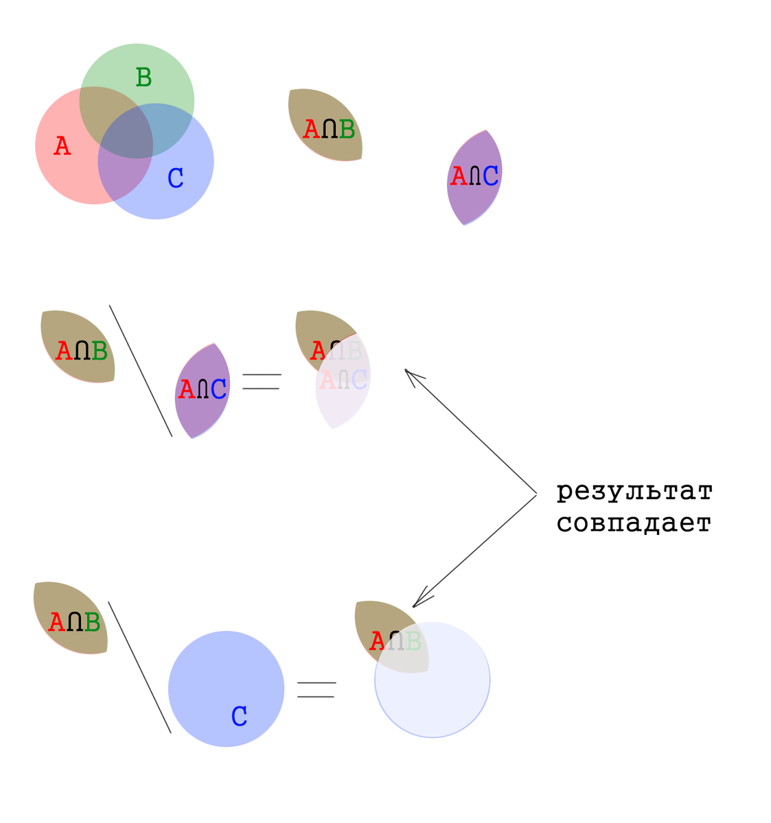Всегда верно, что X∩(YUZ) = [ X∩Y ] U [ X∩Z ] ;