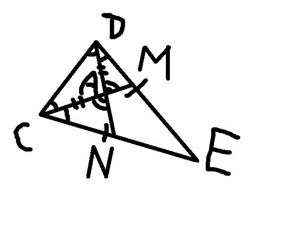 ЗАДАНИЕ4:В ТРЕУГОЛЬНИКЕ СДЕ,СТОРОНЫ СЕ=ДЕ,БИССЕКТРИСЫ СМИ ДН ПЕРЕСЕКАЮТСЯ В ТОЧКЕ А. ДОКАЗАТЬ:ТРЕУГОЛЬНИК ДАМ=САН