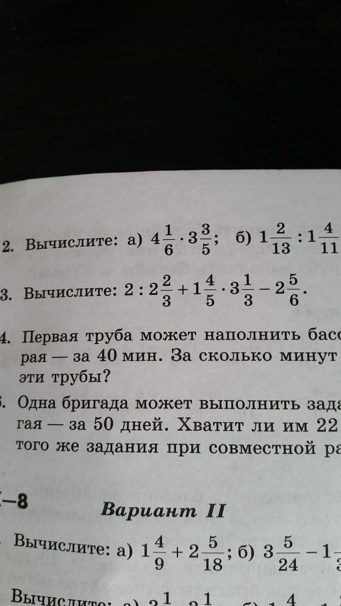 2 : 2 2/3 + 1 4/5 * 3 1/3 -2 5/6 = 2*3/8 + 9/5*10/3 - 17/6 =