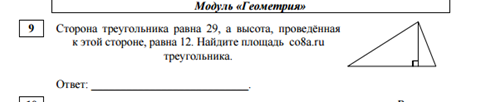У нас дано основание(сторона, к которой проведена высота, она же большая), равное 29 и высота, равная 12⇒ S=