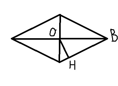 Рассмотрим треугольник ОВН. ОВ = 76/2 = 38, ОН =19. ОН равен половине гипотенузы, значит угол ОВН = 30°, а угол В в ромбе равен 60°. А второй угол равен 180-60=120°