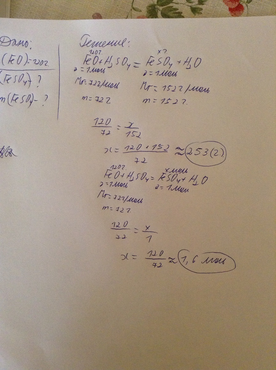 n(FeO) = n(FeSO₄) = 1,67 моль
