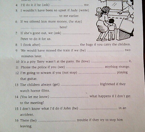 4.asks. 5.had written. 6.would he stay. 7.would ask. 8.will look after. 9.had been. 10.would love. 11.see. 12.don't stop. 13.get. 14.will you let me know. 15.was. 16.will be