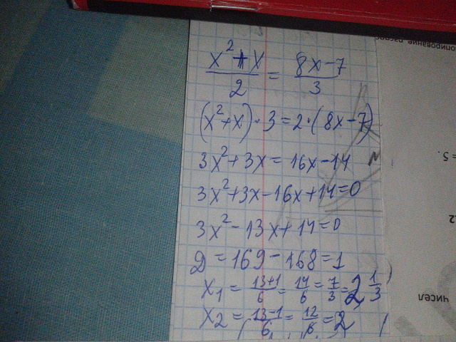 ( X^2 + X ) / 2 = ( 8X - 7 ) / 3
