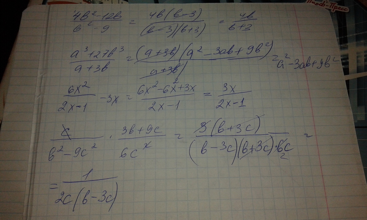 с*(3в+9с)/(в^2-9с^2)*6с^2= 3(в-3с)/(в-3)^2*6с, сокращаем подобные и остаётся, 1/ 2в-6