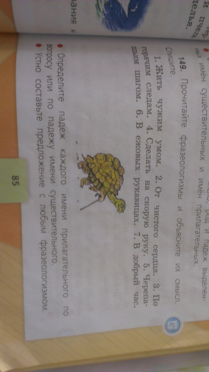 1. Учиться на другом опыте 2.Честно 3. по тем же следам 4. Очень быстро 5. Не торопясь 6. В колючих Перчатках 7. В самый момент