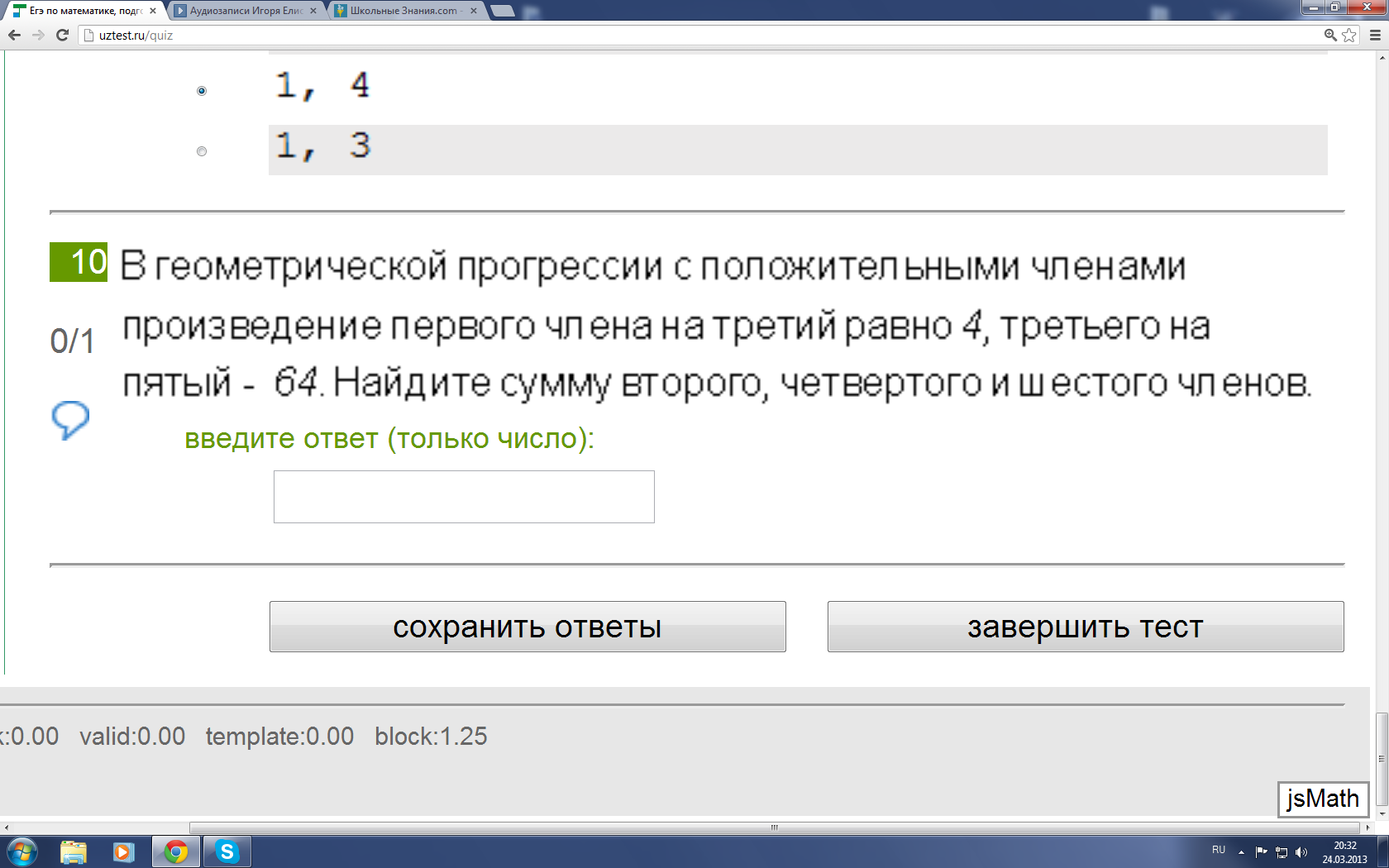В геометрической прогрессии с положительными члена произведение первого и третьего членов равно 4, а произведение третьего и пятого равно 64.Найдите сумму второго, четвертого и шестого членов.(вот задание во вложении)