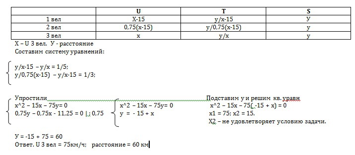 три мотоциклиста выехали одновременно из пункта А. Скорость второго на 25% меньше скорости первого. скорость первого на 15 км/ч меньше скорости третьего.