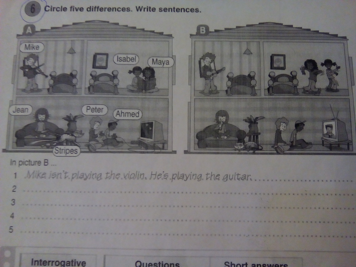 есть образец: Mike isn't playin the violin. He's playing the guitar- перевод: Майк не играет на скрипке. Он играет на гитаре.