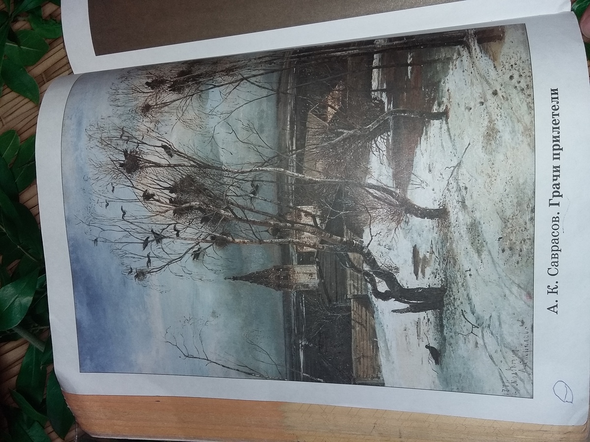 Весна приходит каждый год, и всегда это происходит как-то незаметно. Кажется, еще вчера лежал снег, а сегодня уже все деревья покрылись зеленой листвой. Картина А. Саврасова – это тот самый первый момент прихода весны, который мы часто не замечаем.На картине изображен обычный день. На земле еще лежит снег, все вокруг серо и как будто спит. Спят кривые березки, покосившиеся домики и одинокая церквушка. В полях на заднем плане тоже еще виднеется снег. Зима, похоже, еще властвует. Художник использовал, в основном, темные, серые оттенки. Даже белокорые березки, которые так радуют нас своей белизной летом среди буйной зелени, на картине художника сливаются с общим серым фоном. Все это создает впечатление, что зима пришла надолго, и до весны еще далеко. Но есть среди всей этой не очень радостной картины надежда на скорые теплые дни – стая грачей, вернувшаяся на родину и далеких краев. Им совсем нет дела ни до снега, ни до пасмурного дня, ведь у них кипит работа. Заняты они строительством гнезд. Подправляют прошлогодние, строят новые. Внизу под деревьями на переднем плане мы видим птицу, держащую в клюве ветку. Остальные ее собратья вовсю хлопочут на ветках. И когда переносишь взгляд с полей, церкви, забора на этих птиц, появляется твердая уверенность – так весна уже пришла. Подкралась как всегда незаметно, очень скоро удивит нас сережками на березе, птенчиками в этих строящихся гнездах и буйством зелени. Во всем этом нас убеждает и ноздреватый снег, и проталины, и, конечно же, они, грачи, которые весну принесли на своих крыльях. Когда думаешь об этом, то и небо на картине уже не кажется серым, а становится серо-голубым, и церковь с покосившимся домиком как будто освещается лучиком солнца, поэтому и нарисована такими красками.