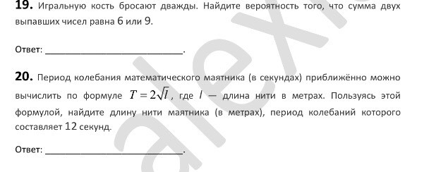 19) в первый раз может выпасть от 1 до 6, во второй раз тоже. Значит, всего возможных событий 36