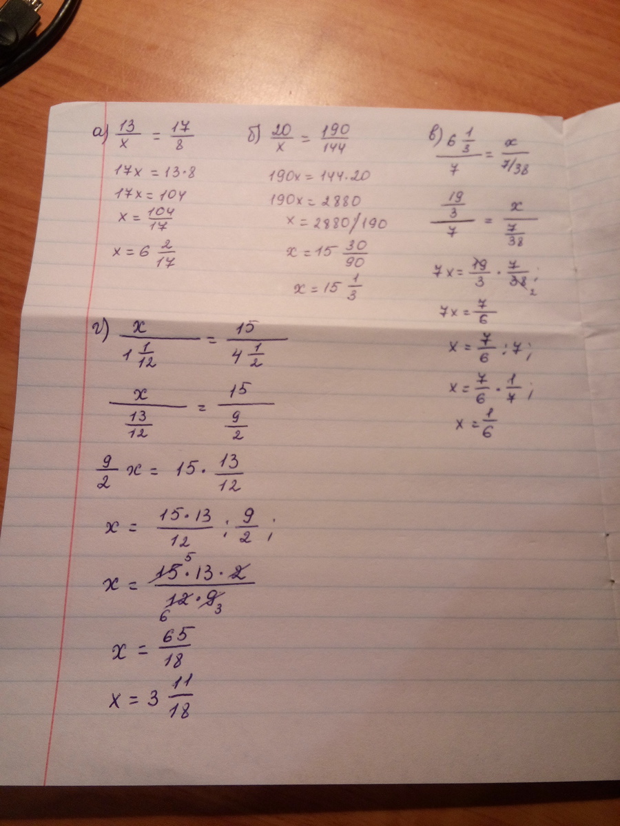 б)(обыкновенная дробь) 20/x = (обыкновенная дробь)190/144