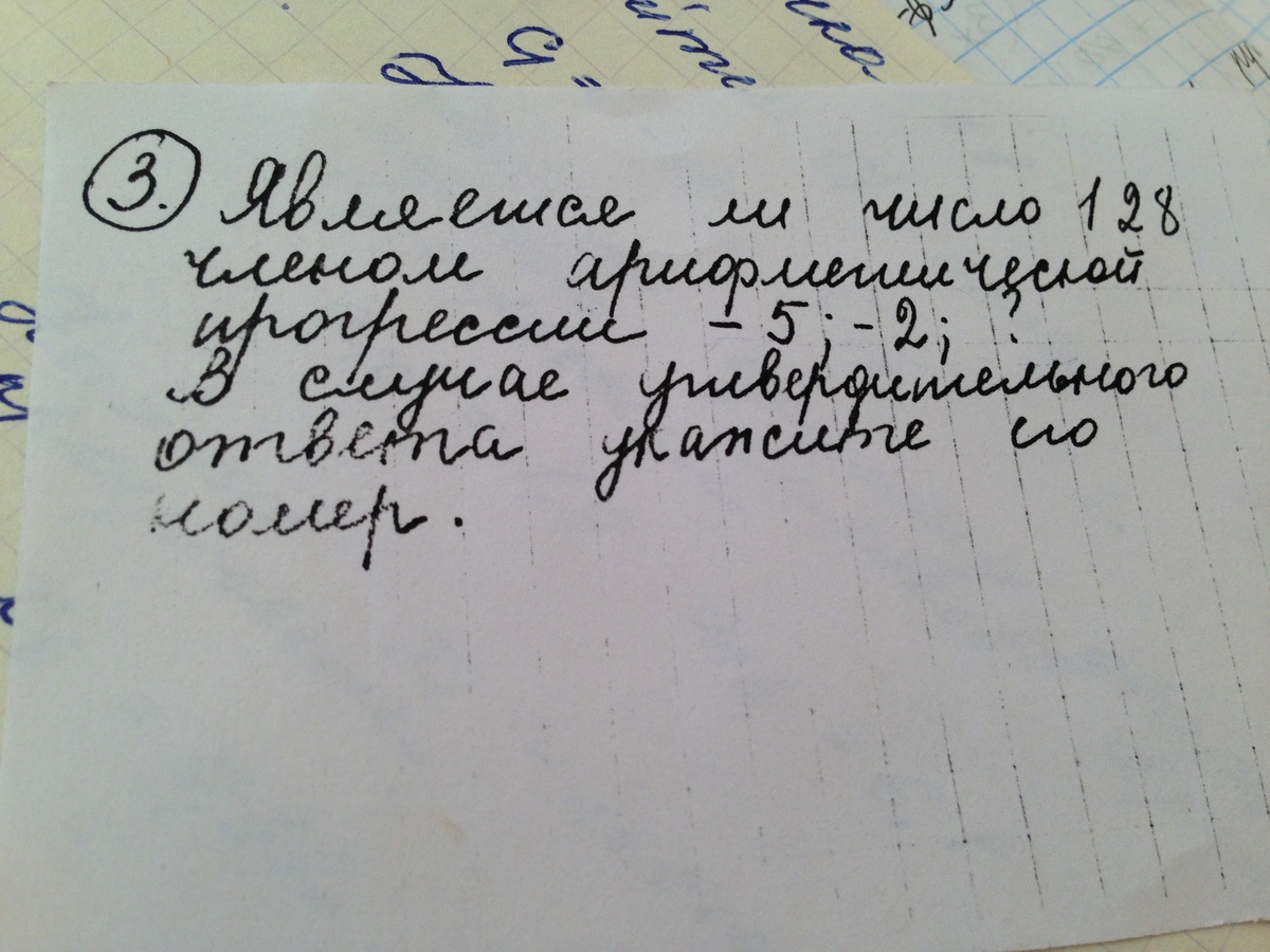 -8+3n=128, 3n=136, n=136/3, n не является натуральным числом.В арифм. прогрессии n-номер члена прогрессии. Значит, 128 не является членом арифм. прогрессии.