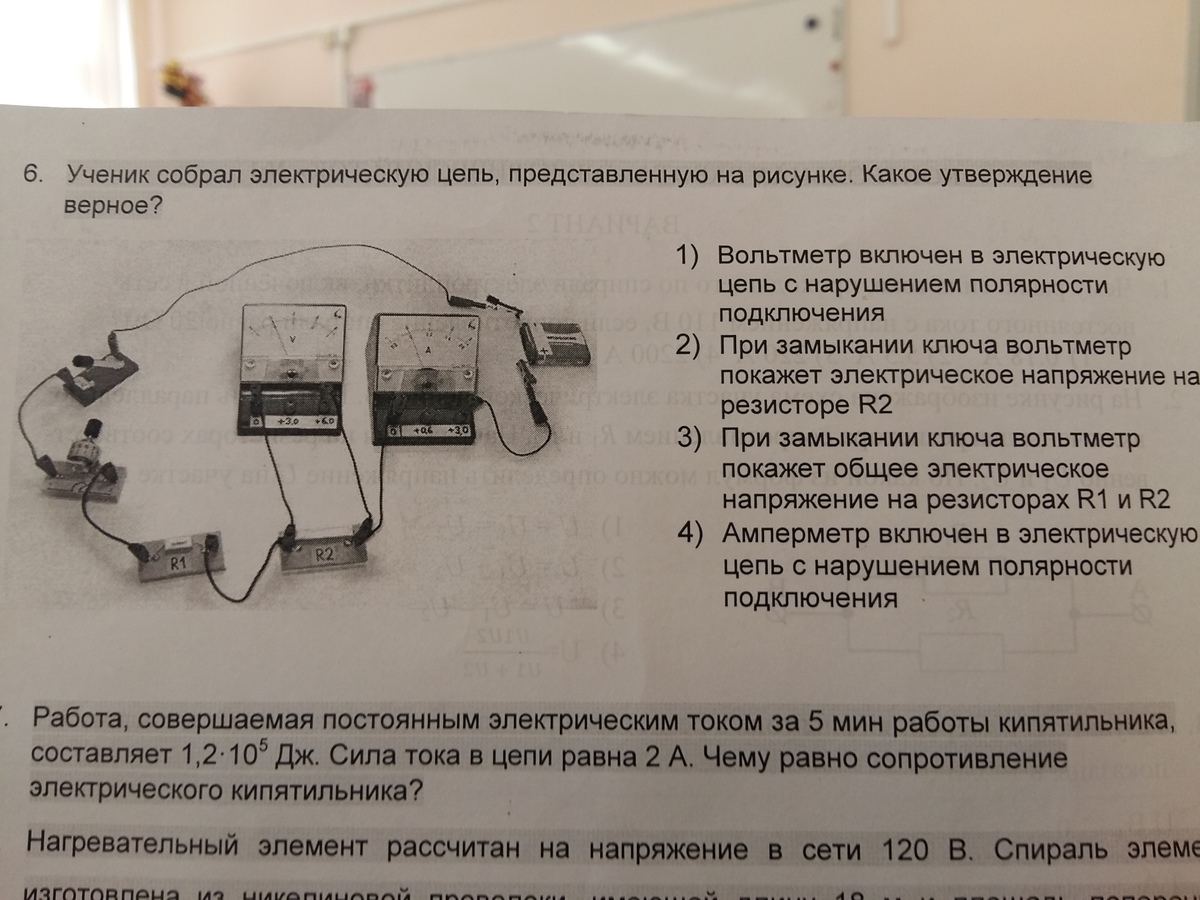 2 , тк вольтметр подключается параллельно и показывает напряжение на 2 резисторе