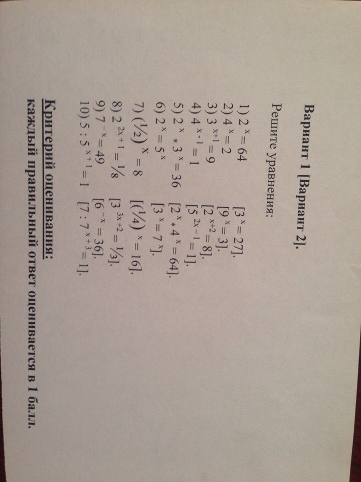 1) 2^x = 64 = 2^6 и х=6