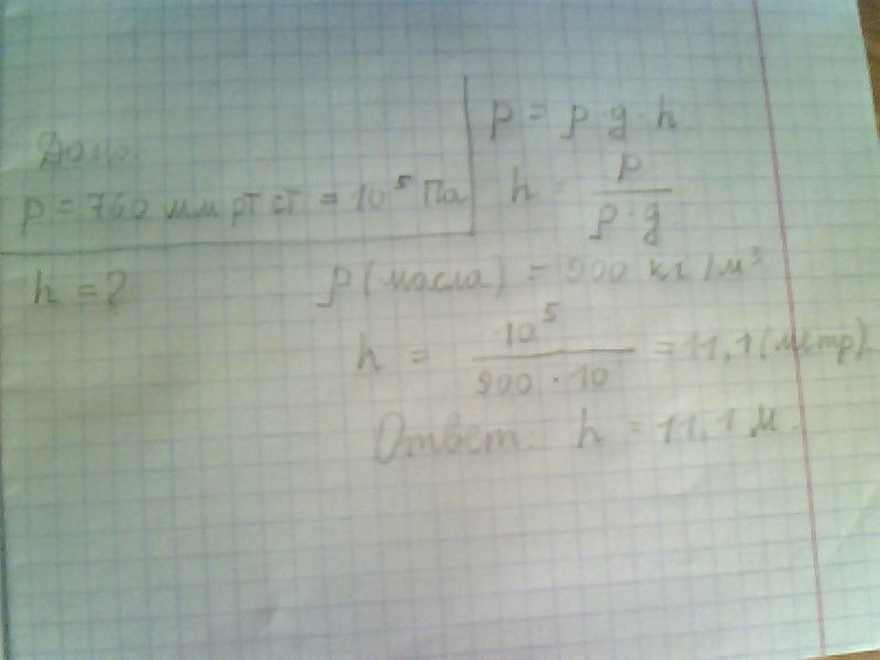 какой высоты был бы столб масла в барометре Торричелли , если столб ртути показывал давление 760 мм ртутного столба ?