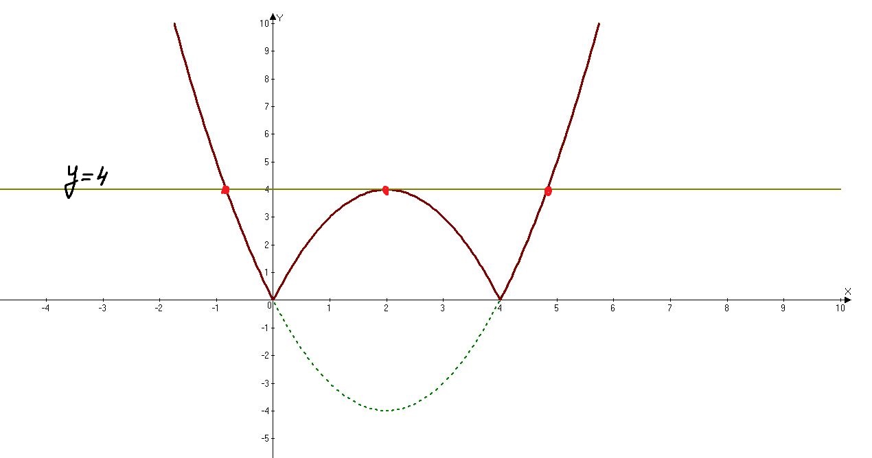 на рисунке изображен график функции y=x^2-4.Используя график найдите значение а, при котором прямая у=а пересекает график функции у=|x^2-4x| в трех различных точках.