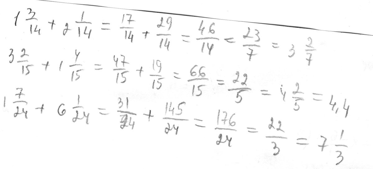 В) 1 целых 7\24 +6 целых 1\24 = (1+6) + (7/24+1/24) = 7 8/24 = 7 1/3