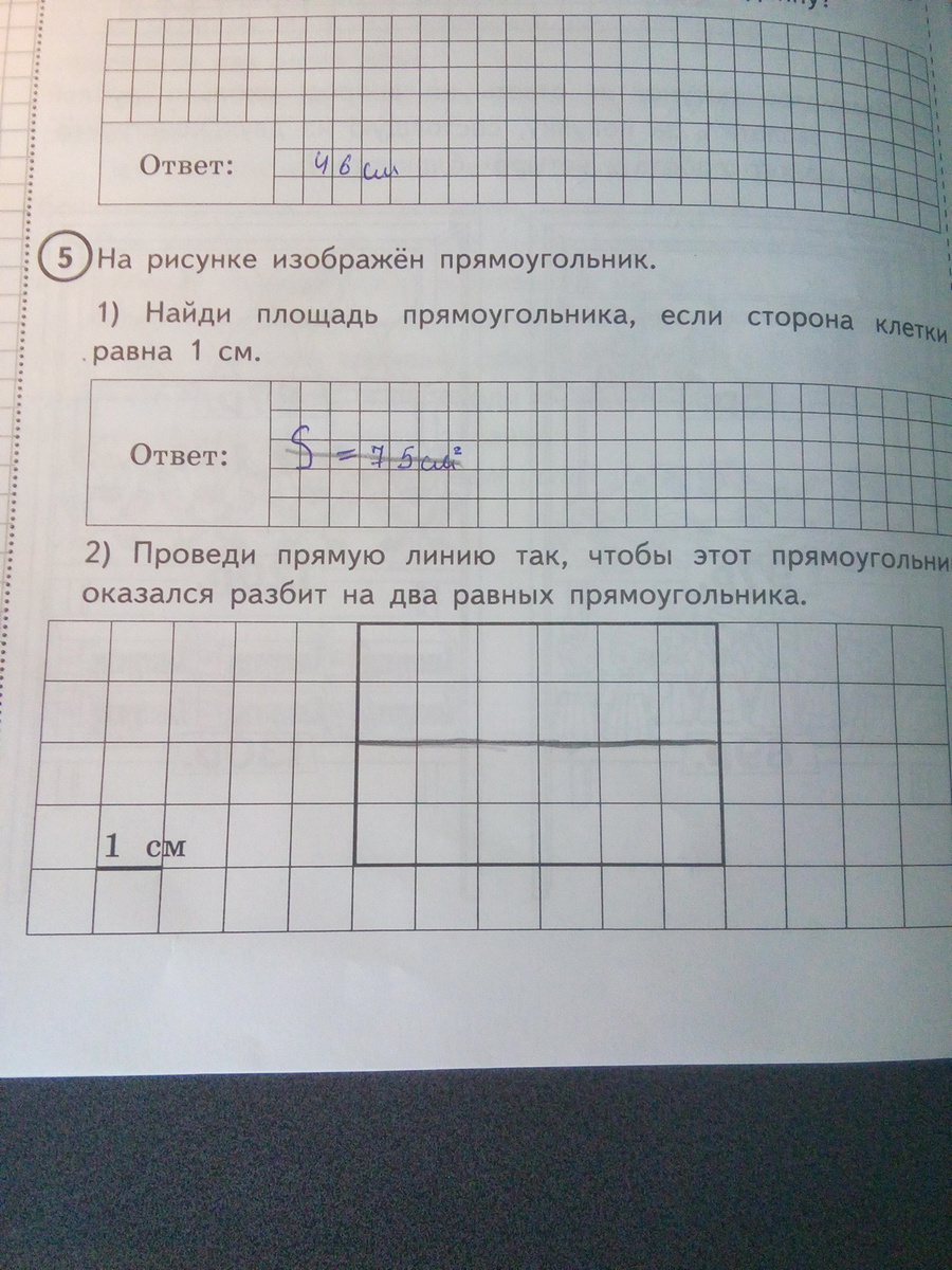на рисунке изображен прямоугольник. найди площадь прямоугольника, если сторона клетки равна 1 см