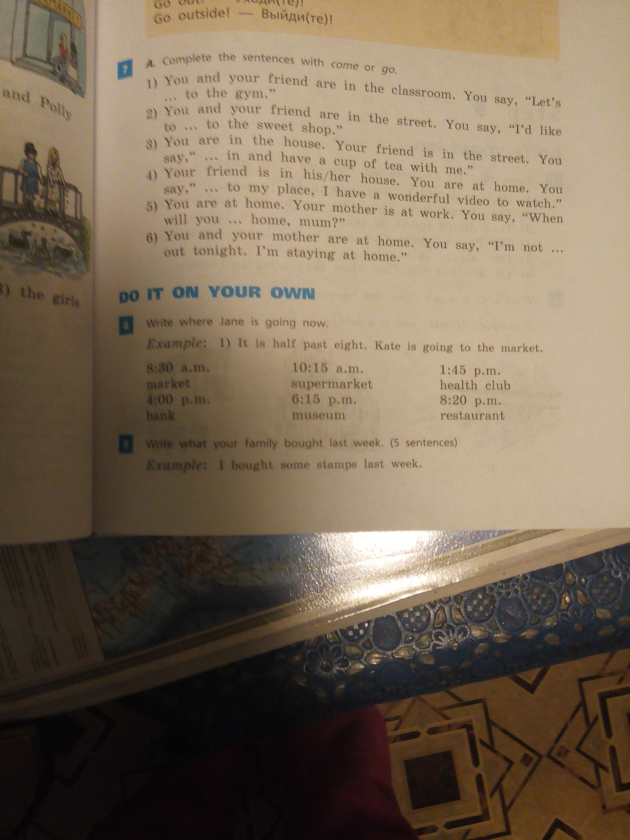 2) Its quater ten a.m. Kate is going to the supermarket.