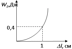 На рисунке изображена зависимость потенциальной энергии Wp упруго деформированного стержня от его удлинения ∆l. Найдите удлинение ∆l, соответствующее потенциальной энергии Wp = 3,6 Дж. Закон Гука для искомого значения ∆l выполняется.