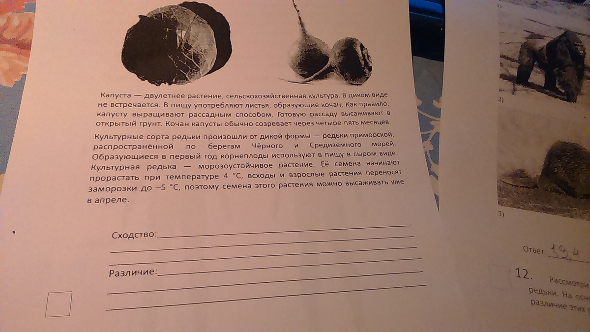 Рассмотри рисунки, прочитай текст и сравни описания капусты и редьки. На основании описаний укажи хотя бы одно сходство и одно различие этих растений. Помогите, пожалуйста, СРОЧНО НАДО!!!