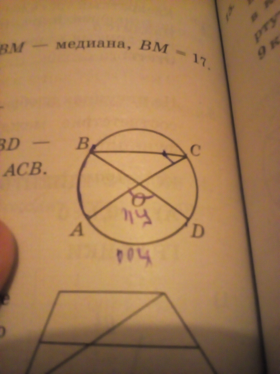 В окружности с центром О отрезки AC и BD-деаметры.Угол AOD=114.Найдите угол ACB.