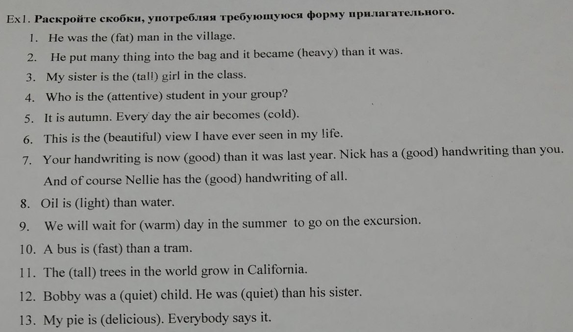 1 fattest 2 heavier 3 tallest 4 most attentive 5 colder 6 most beautiful